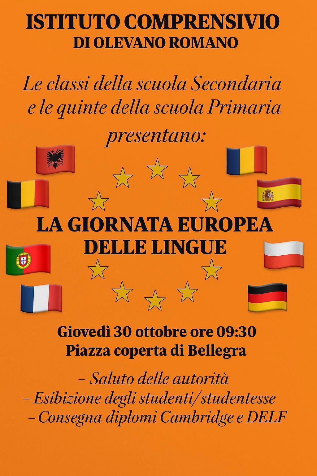 Classi della scuola Secondaria e le quinte della scuola Primaria. Piazza Coperta di Bellegra ore 09.30.